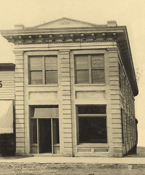 Architect A.F. Billmyre drew up plans for the new bank building that was constructed in 1909 for Charles Cornelius, located on the southwest corner of Hewett and West Fifth streets. The same year, Cornelius also had plans drawn up for a new house that was built within the city of Neillsville. |