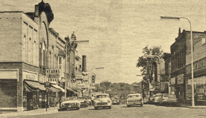 Kearns Rexall Drug Store was located in the 500 block of Hewett Street. McCains was on the northwest corner of the Hewett and Fifth Streets intersection with Kearns Drug Store next door on the north side. |