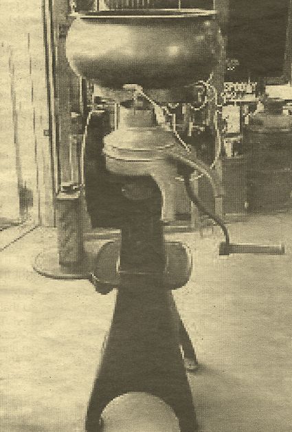 Pictured above is typical 1940s-style De Laval cream separator that was commonly used on area dairy farms during that era. Milk was poured into the above steel container and the side crank handle then was manually turned, putting the cream-from-milk separating process into motion. |