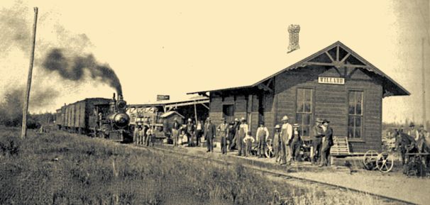Shown here is the Willard train depot and pickle station, built in 1910. Trains traveled through on their way from Fairchild to Owen. According to an account by Steve Plautz on wiclarkcountyhistory.org, “Mr. [Ig} Cesnik came to Willard every day to meet the train. He picked up an newcomer that was interested in buying land. Trains came here about 7:30 a.m.; they had left Fairchild about 6:30 a.m.” |