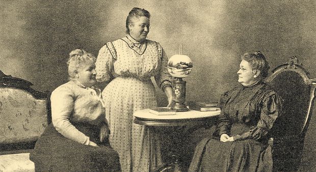 Elva Kemp, Nettie Youmans and Viola De Laine, daughters of B.F. “Doc” and Mrs. French, representing one of Neillsville’s first families, are shown as they visited in the Youmans’ home. Photo courtesy of Bill Roberts’ collection. |