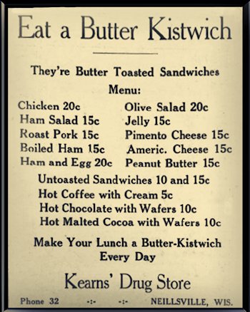 Kearns’ Drug Store lunch advertisement. Yummy!