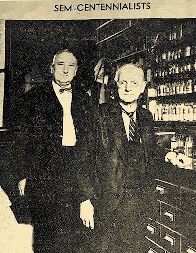 George Sontag, left above, recently was awarded a certificate of honor as “semi-centennialist” of the Philadelphia College of Pharmacy. He has been identified with C.C. Sniteman, (right) who was awarded the “semi-centennialist” certificate a few years ago, for the last 58 years. Clark County Press Photo |