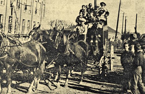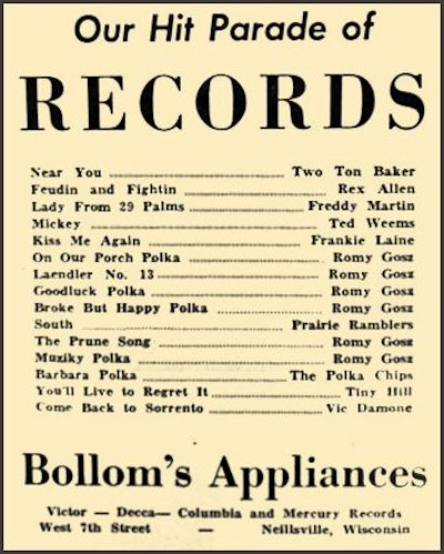 Most popular attractions for youngsters during the Fall Festival were the stagecoach, pony and car rides provided by Chap Paulson and his helpers. Stagecoach rides which sold during the summer for 50 cents each at Wisconsin Dells, were passed out free under an arrangement with the Chamber of Commerce. And the rides did a truly grand office business throughout Friday evening and Saturday afternoon. In fact, there were times when children and their parents were lined up for a half block or more. In this picture "Dry Gulch" Gabby Schultz is shown expertly handling the four-in-hand. Driver of the second stagecoach was "Sagebrush Jack" Tibbett. (Press photo 1957) |