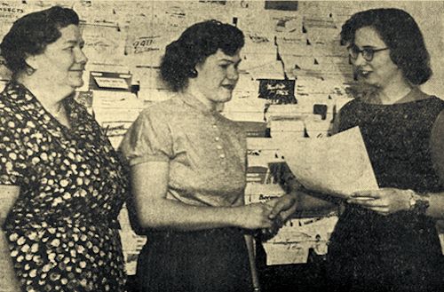 Miss Barbara Ray (right), Clark County Home Agent, congratulates June Haslow, Loyal, on her selection as the outstanding 4-H Club girl in canning. June’s mother, Mrs. Paul Haslow, looks on proudly. June will attend the National 4-H Club Congress in Chicago December 1-5 as a result of her achievement. |