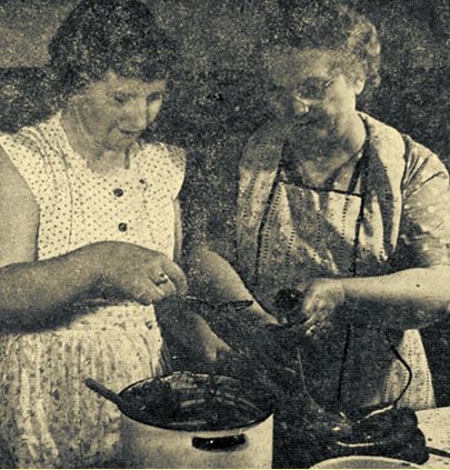Here you see Mrs. Herman Buchholz of the Neillsville community, making the sausage for which her friends regard her as remarkable. She is assisted by her daughter, Mrs. Henry Freestone. This picture appeared in a recent issue of the Wisconsin Agriculturist and Farmer. (Press photo October 16, 1952)