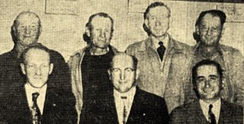 These are the new leaders of Clark County Farm Bureau chosen at the annual meeting last week to direct the work of the bureau through the ensuing year. They are: Front row, left to right, Arthur Samuelson, Worden, secretary-treasurer; Ray Baldeschwiler, Thorp, vice-president; Louis Galiger, Reseburg, president. Back row, directors, left to right: Ted Kippenhan, Mead; Lawrence A. Kitzhaber, Warner; Jess Capes, Longwood; Frank Plautz, Hendren. (Press photo October 30, 1952)