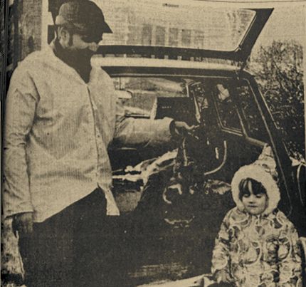 To tell the truth, little Kory Kienzle of Webster, IA, was just a little bit afraid of the four-point buck her daddy, Greg, brought back on the opening day of the season. Kienzle bagged the buck in the Sherwood area about 8:30 a.m. Saturday. It rough-dressed at about 160 pounds. (Press photo November 23, 1972)