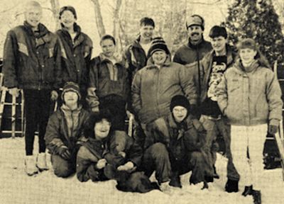 Neillsville Special Olympics skiers and coaches gathered for a picture at Friday’s Invitational event at the Neillsville Country Club. (Front, left) Gina Thoma, Becky Egstad and Travis Huth. (Back, left) Keith Sladek, Kim Newman, Peg Gaede, Brandon Kuhn (coach), Julie Kuhn, Dean Glaze (coach), Tim O’Brien and Kerri McLean (coach). (Press photo Jan. 6, 1992) |
