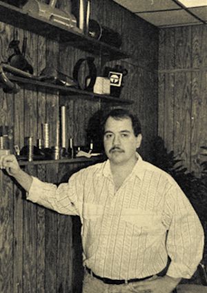 As of January 1st, Mike Statz (pictured above) will be the new head manager of the Nelson Muffler plant in Neillsville. Statz will be replacing Fred Printiss, who has been promoted to manager of Nelson Industries European Manufacturing Division. Pictured with Statz are various products of the Nelson Muffler plant. (Press photo, Jan. 2, 1992) |