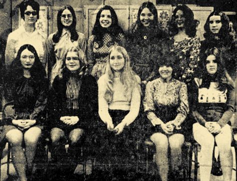 The new Miss Neillsville will be selected from among the 10 candidates gathered around Miss Lori Shaw (seated center), Miss Neillsville for 1971. She will be named during the Winter Carnival program Saturday night at the fairgrounds. Candidates are: (seated from left) Kathy Lulloff, Candace Sturtz, Miss Shaw, Mary King and Kay Mabie; and (standing) Cinthia Marg, Debbie Knoll, Lori Opelt, Charmaine Montgomery, Mary Schield and Annette Schraufnagel. (Press photo Feb. 3, 1972)