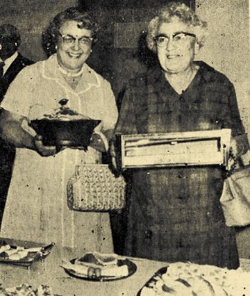 Mrs. Bessie Spangler (right) won first place in the Clark County Dairy Recipe Contest held last week in Greenwood. Second place was won by Mrs. Charles Diers of Neillsville. Mrs. Diers also is adult leader of the Happy Hustlers 4H Club, which was active in dairy promotion during June Dairy Month. Mrs. Spangler will represent Clark County in the district bakeoff in Eau Claire. (Press photo July 13, 1972)