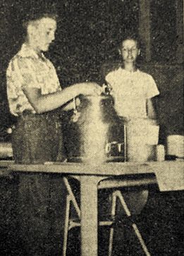 Herbert Lindner and Donald Frank of the Eaton Center Club show how to wash a milking machine.