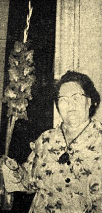 Mrs. Charles Emling of Loyal won first place at the fifth annual flower show sponsored by the Neillsville Monday Progress Club. Mrs. Emling not only won with the total number of points but also entered the champion spike of gladiolus. Her total number of prizes was 114. This included many colors of gladioli, as well as flowers in other classes. One of these was for the largest flower, which was a red dahlia as large as a dinner plate. Second and third place went to Mrs. Gust Rosenbaum and Mrs. Ted Dux, respectively.
