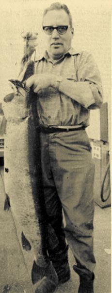 The largest muskie taken in area waters this year, and one of the largest of the year taken in Wisconsin, is this 51 1/2inch, 40-pound beauty exhibited by Calvin Swenson of Neillsville. Swenson, who is Neillsville’s assistant postmaster, caught it Sunday fishing from a boat in the canal, below the power dam at Hatfield on the Black River. He used bucktail and battled the fish for 20 to 30 minutes. “I just don’t know how long,” he said. Swenson who concentrates on muskies, caught another big one just a year or so ago, but it was smaller than Sunday’s catch, He weighed it in at Irv and Lois’ tavern, south of Neillsville. (Contributed photo Oct. 2, 1975)