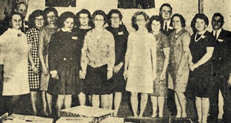 Leaders of the 1968 4H honor clubs of Clark County were recognized, along with their clubs, at the annual leader’s meeting in Loyal, last Thursday night. The clubs were selected for program, membership and leadership. Receiving the recognition in behalf of their clubs were: back row, left to right: Mrs. Emil Looker, Merrymakers; Gale Lonning, Lucky Clovers; Mrs. Gilbert Loos, Loyal Lads and Lassies; Mrs. Fritz (Phyllis) Conrad, Longwood Center; Mrs. John D. Speich, Greenwood Satellites; Mrs. Lucille Niedzwiecki, Thorp 4H; front row–Mrs. Lois Rogers, Maplewood Badgers; Mrs. Violet Mechelke, Jolly Workers; Mrs. Bob Gulcynski, Thorp; Mrs. Clayton Braun; Mrs. Rose Zepaltas, Busy Badgers; Mike Lindow, Chili; Mrs. Carl Ihlenfeld, Y Knot Kids; and Cyril Rakovec, Willard. (Press photo November 14, 1968)