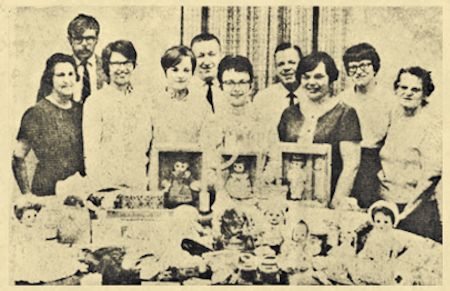 The hearts of more than 120 Clark County children who did not expect a Christmas were on their way to being made happy when the picture above was taken. On the table in front of the social workers above was approximately one-third of the toys, dolls, games, gifts, and other presents assembled by bighearted people of Clark County for children of needy families. Shown with them were some of the members of the Clark County department of social services, which formed an off duty spearhead for “Operation Merry Christmas” for these youngsters. They are: (front row, left to right) Gladys Bonney, Judy Dux, Kathie Saunders, Eleanor Alsterberg, Sue Christian and Verna Mallory; and second row, Tom Hofslien, Bill Berkan, Harry Stricker and Beulah Zoutendam. Unavailable for the picture were: Robert Benson, director of the department, Lucy Markee, Vickey Conkey, Fern Holt and Gary Johnson. (Press photo Dec. 26, 1968)
