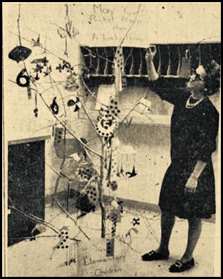 This is a penny tree. Children of the elementary school in Neillsville, got it up as a going away present for their principal, Earl Ruedy, who last week severed connections with the Neillsville public school system after nearly 29 years of service. He has gone to Oostburg, in the eastern part of the state, to serve as district administrator. The tree contained 485 pennies, each penny representing each child, kindergarten through sixth grade. The “ornaments,” of which the pennies were a part, were made by the grade classes, each using its own particular design. Shown with the tree is Mrs. Shirley Graves, office secretary of the elementary school. (Press photo, Jan. 18, 1968)