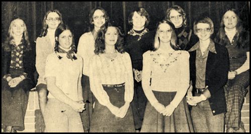 Ten comely candidates for the title of Miss Neillsville gathered for this informal picture Tuesday. The title will be awarded during the Snowball Dance Saturday night at the Silver Dome, held in conjunction with the annual winter carnival, which will continue through Sunday. From the left, the candidates, all juniors at Neillsville High School are front row, Patty Schoen, Carla Zilk, Lynn Corey and Sue VanDam; and back row, Diane Walker, Debbie Brekke, Ann Sternitzky, Brenda Wilcox, Marcia Vandeberg and Lina Opelt. (Press photo January 30, 1975)