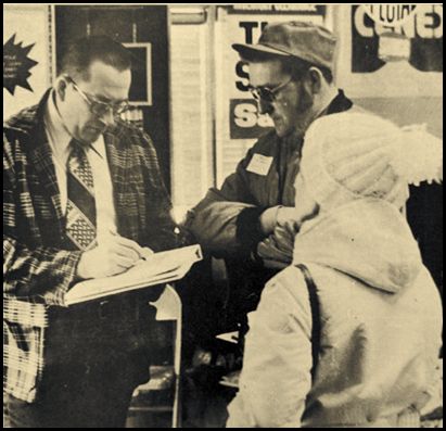 In present times, farmers have lots of questions. Mr. and Mrs. Richard Shaw, town of York, are seen asking some of those farm questions. Answering is Ken Karnitz. The questioning tool place at the first annual farm city display, two-day event recently held in Neillsville and sponsored by the local Farmer’s Union Co-op. Over 31 displays were available for rural and urban study and were directed by four local staff salespersons and 27 others from throughout the Midwest. Held at the Neillsville American Legion hall, the event drew over 1,000 people. According to sponsors over 1,500 dined on pancakes and sausage during the event. Obviously, a few ate more than once. (Press photo Feb. 13, 1975)