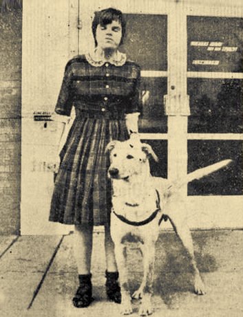 The actual obtaining and taking command of “Duke” was an exciting experience for Becky. There were more than four hours of street training daily. The instructor accompanied the team on the first few walks, then left them to find their way on a memorized route through Rochester and Royal Oak. The instructor, of course, was available if the student became confused or lost. They took trips through various department stores and other places.