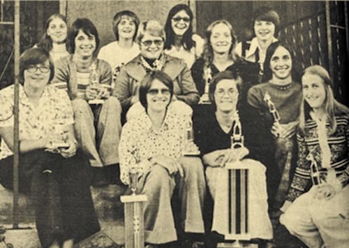Penguins are usually only winners in the colds of Antarctica, but some local Penguins were trophy carriers in Neillsville after taking first place in women’s league action at the Moonlite Inn twelve-inch softball diamond. Sponsors of the team were Betty and Ronnie Meihack of the Penguins Drive-In in Neillsville and saw their team boast of 140 season record. Members of the team are (back row, l to r) Phyllis Beck, Lynn Meihack, Barb Kaduce, and Diane Trimberger; (center row l to r) Vickie Mueller, Janis Sischo, Barb Petkovsek, Lori Ann Dux, Judy Sischo and Patty Tibbet; and (seated in front) Vicki Sischo and Lori Meihack. Absent was Gabriel Yurkovich. (Press photo August 29, 1975)