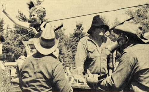 Where is Matt Dillon when you need him? Is that “Kitty” waving at him? Dressed in the proper attire. “Miss Kitty” was actually waving to the crowd lining the parade route during the last day of Hatfield’s centennial celebration. The float, one of 75 entries, depicted the Long Brand Saloon complete with rinkytinky piano, the poker playing foursome, plenty of guns and of course, “Miss Kitty.” With a big smile and playing “Miss Kitty” was Jana Marden of Neillsville. The entire parade proceeded through encroaching spectators in the hot July sunshine. (Press photo July 1975)
