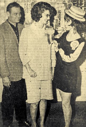 Mr. and Mrs. Arden Hinkelmann of Neillsville are pictured as they were welcomed to the national Mobile convention in Chicago last Thursday by the official greeter. During the convention the Hinkelmanns won a door prize of a silver service set. Mr. Hinkelmann operates a Mobil service station in Neillsville. (Contributed photo Sept. 26, 1968)