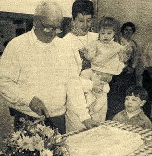 Mayor Robert Lulloff officiated the dedication of the childcare center by cutting the cake. (Press photo Mar. 2, 1994)