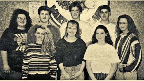 Members of the Neillsville High School Forensic Team going on to state are (row 1, left to right) Melanie Schrank, Becca Hubing, Clarice Seebandt; (row 2) Amy Wren, Nathan Vasquez, Jeff Reither, Bryan Evenson and Natasha Rueth. (Photo by Poplar April 13, 1994)