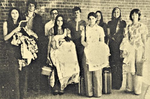 Their bags packed members of the Neillsville High School forensic team are pictured as they prepared last Friday to depart for the state contests in Madison. The members pictured are: first row (l to r) Lynn Myer, Mary Menne, Julie Menne and Nancy Spiegel; and second row, Paul Vine, Mark Vornholt, Howard Corey, Marie Vornholt and Lori Smagacz. (Press photo May 2, 1974)