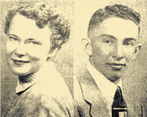 Genevieve and Roger won the scholastic honors of 1954 at Thorp High School, Genevieve being valedictorian of the graduating class and Roger the salutatorian. Genevieve has a scholastic average of 93.194 and Roger 93.074. Genevieve has done a lot of things outside her books. She has been busy with band, chorus, dramatics, forensics, Booster Club, as co-editor of the junior paper and now as assistant literary editor of the Seniorian and assistant editor of the Cardinal Hi-Lites. Roger has also led a busy life, having been class president in his sophomore and junior years, Prom King, member of the student council, assistant editor of the Seniorian, Thorp’s delegate to the Badger Boy’s State and active in sports, chorus, forensics, and dramatics. Genevieve is the daughter of Mr. and Mrs. Corwin, C. Guell and Roger is the son of Mr. and Mrs. Joseph Turenne. Both young people have come up through the public schools of Thorp, all the way from the first grade. (Photo courtesy of Eau Claire Leader April 29, 1954)