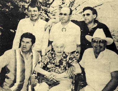 Hannah A. Loos of Neillsville Memorial Home celebrated her 96th birthday on April 16, 1994, with her sons (top, left to right) Gene O., Marshfield, Wis.; Harley F., Chili, Wis.; Lloyd L. Edgewater, Md.; (bottom Gary A. Rockford, Ill.; Hannah; Alvin F. Casa Grande, Ariz. (Contributed photo April 27, 1994)