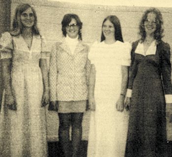 Winners of The Clark County 4-H style revue are pictured above. They are (from the left): Carole Richmond of Granton, first alternate; Karen Richmond of Granton, state fair competitor; Linda Lewandowski of Thorp, state fair competitor; and Debbie Oelrich of Unity, second alternate. (Press photo July 18, 1974)