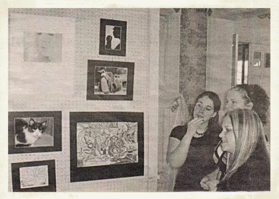 Senior artists (l-r) Michelle Mitte, Samantha Turczyn and Mary Glaza look at photographs displayed at the Class of Senior Art Show at Tuft’s Mansion held Friday, May 16, through Sunday, May 18, (2008). Featured work included photography, paintings, graphic arts, ceramics and stained glass pieces. Guests had the chance to meet with the artists Friday night and enjoy some jazz music on the porch. Featured artists were Lyne Noah, Stephanie Attoe, Samantha Turczyn, Jillian Harmening, Marta Knodle, Jena Ehlen, Mary Glaza, Amanda Tyler, Michelle Mitte, Zach Lueck, Nick Sabin, Holly Opelt, Amber Grottke and Katie Mills. (Contributed Photo)