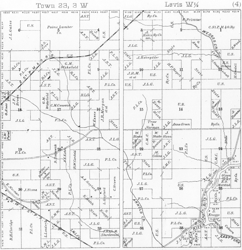 Land Co, J L Gates, J R Morgan et al, A S Trow, State, Paine Lumber Co