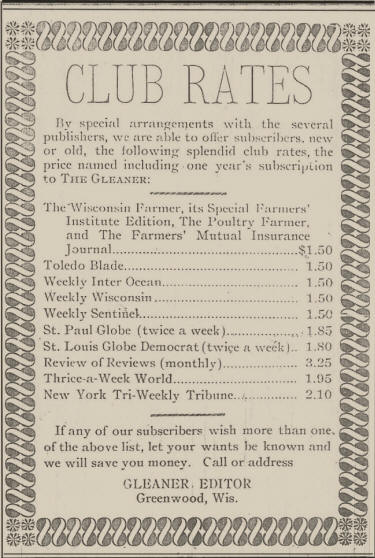 ----Source: Greenwood Gleaner (Greenwood, Wis.) 2, Feb., 1900