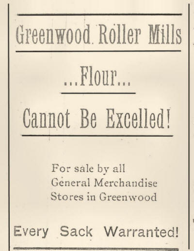 In March of that same year, the newly wed twenty-three year old, Levi Palmer of Loyal, Wisconsin took a position with the company, but later that summer resigned. For a time in 1916, Henry Hobart Hartson, who twice owned and edited the Greenwood Gleaner, managed the Greenwood Roller Mills and became part owner. In 1918, Erastus Bowen was president and Edward F. Wollenberg was secretary and treasurer of the Mills. The company was listed in the 1926 business directory of the city.