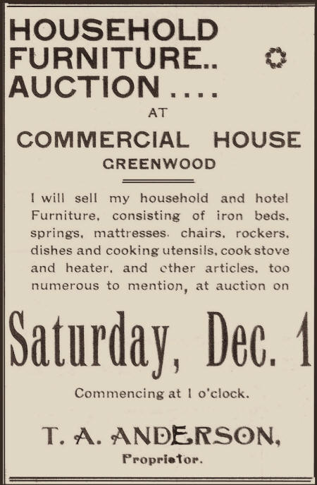 The above ad appeared in the Greenwood Gleaner, December 21, 28, 1900 & January - February, 1901.