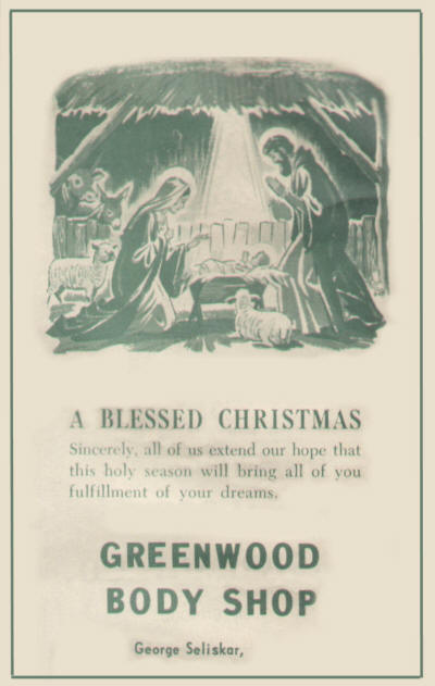The ad above was purchased by George Seliskar and appeared in the 1967 Greenwood Gleaner Christmas Edition.