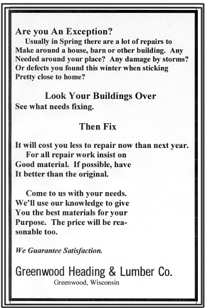 Greenwood Gleaner advertisement for the Greenwood Heading Mill.