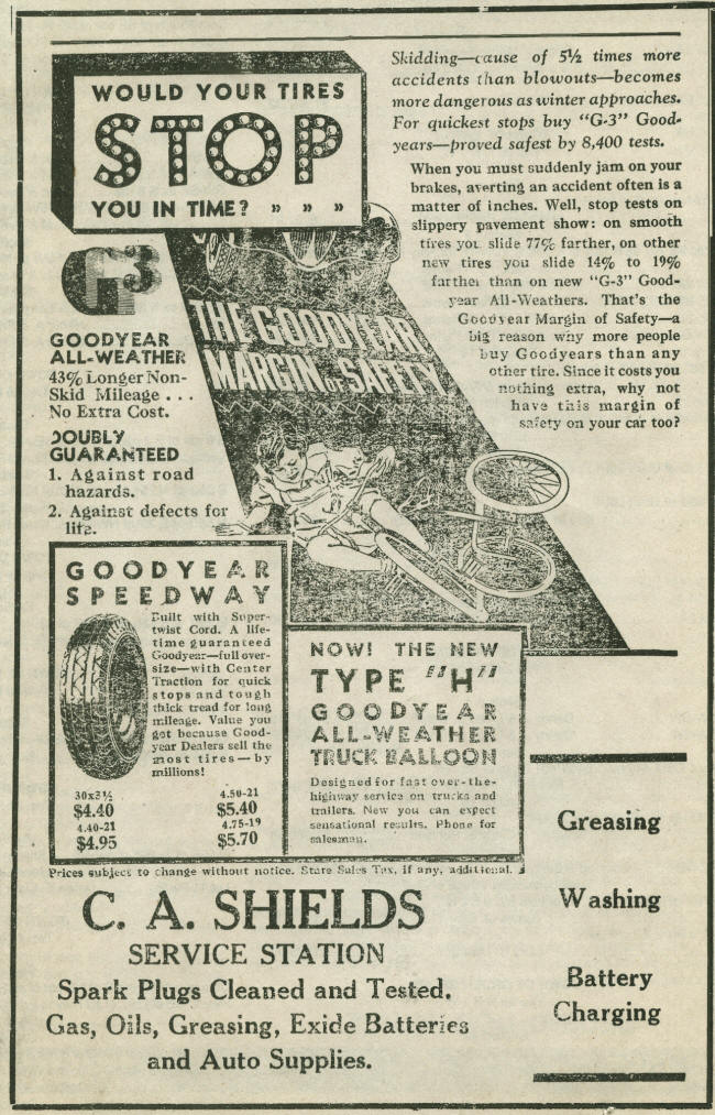 The above advertisement appeared in the Greenwood Gleaner, Oct. 4, 1934
