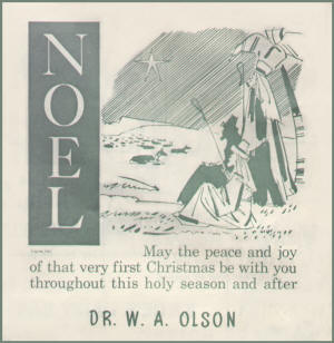 "It is with mixed emotions," Dr. Olson confessed, "that I close a long career of medical service to the wonderful people of Greenwood, but recollection of the many friendships formed during these years will help me adjust to retirement. I thank the thousands of people who have made living in Greenwood so wonderful, so thrilling, and so pleasant."