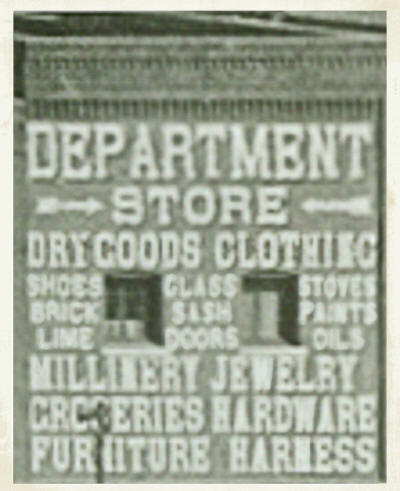 [Close-up #1, the "Big Store/Farmer's Store"] [Close-up#2, Store Sign]
