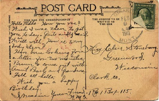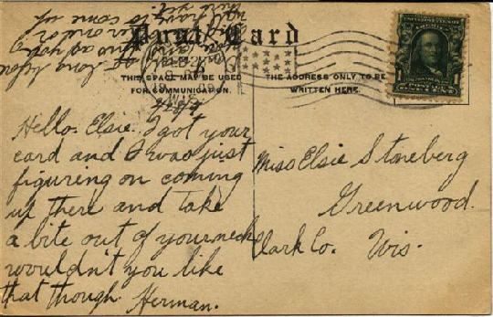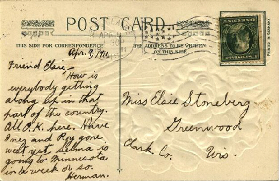 Recipient: Miss Elsie Stoneburg, Greenwood, WI