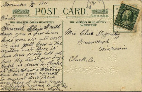 Recipent: Mrs. Elsie DeYoung, Greenwood, Wisconsin. Clark Co. |