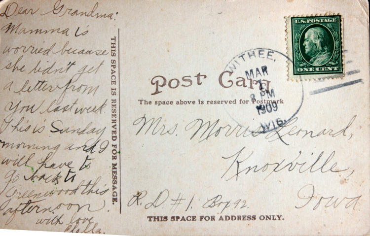 From: Clella Andrews, 1 Mar 1909, Withee,