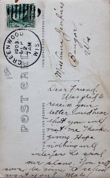 From: Mabel ?, Greenwood Wisconsin, 2 Sep 1903