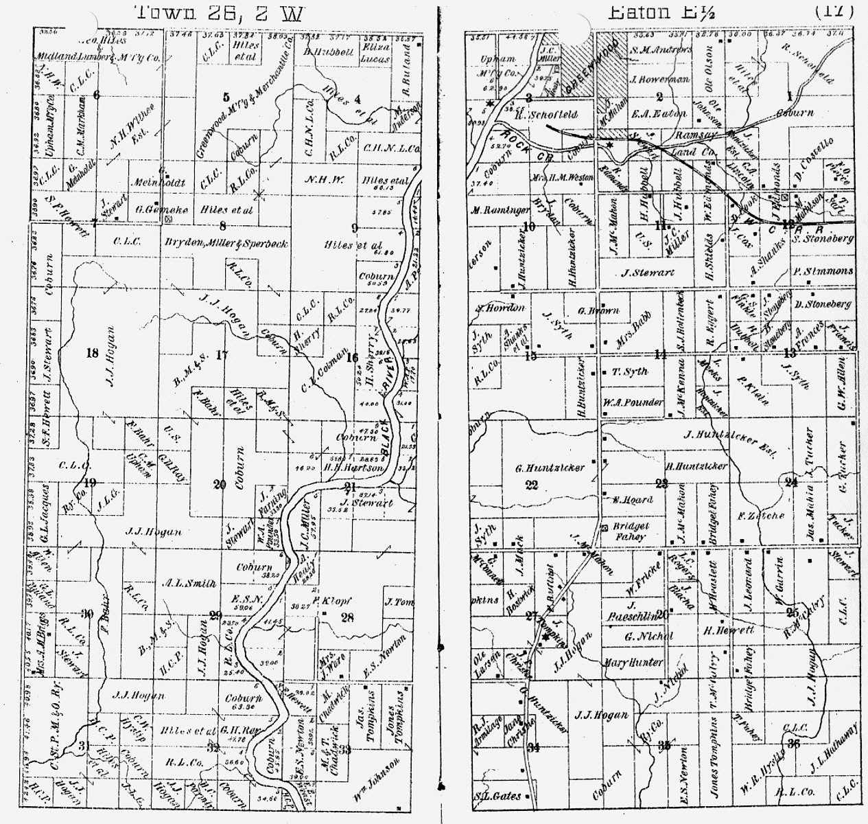 Land Co.; Frank Hatton; Wisc. F.L. Co.; H. Briden.