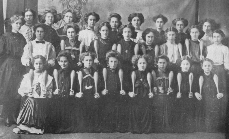 Girls' Gymnasium-Andrews, Clella; Baird, Pearl; Braun, Emma; Braun, Setonia; Bryden, Hazel; Burch, Edna; Clute, Gertrude; Haglund, Hildur; Hamre, Florence; Horn, Dora; Johnson, Cora; Ketchpaw, Beatrice; Kleinschmidt, Silvina; Knop, Margaret; LeGault, Della; LeGault, Marcia; McCormick, Bessie; Palmer, Dorothy; Pfunder, Elsie; Pratt, Clarice; Recheleu, Elda; Rossman, Mabel; Sheets, Edna; Sheets, Lelah; Sloniker, Fern; Smith, Alda; Sorenson, Jennie; Watson, Florence.